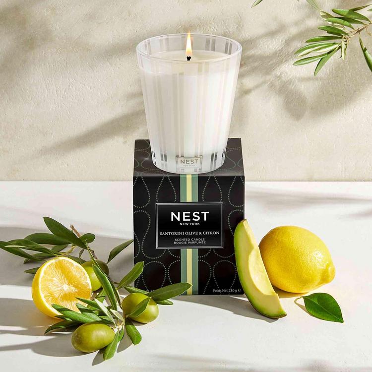 Indulge in the splendors of the Greek islands with this scented candle featuring notes of fresh lemon zest and Mediterranean olive leaf blended with creamy avocado and hints of black pepper. This exquisitely fragranced Classic Candle elevates everyday living and entertaining. It is meticulously crafted with a proprietary premium wax formulated so the candle burns cleanly and evenly and infuses a room with exceptional scent. Approximate burn time: 50-60 hours.