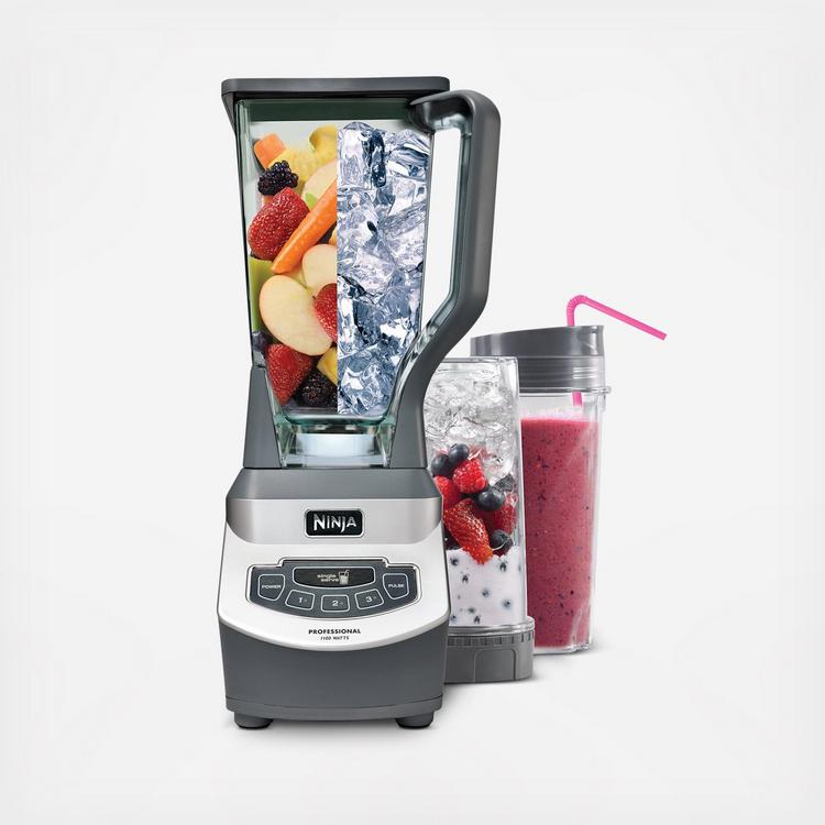 The Ninja Professional Blender & Nutri Ninja Cups are a high-powered smoothie-making dynamo. Outfitted with 1000 watts of professional power, this tool is exactly what you need for delicious frozen drinks. Not only do the Ninja Total Crushing blades perfectly crush ice, they also blend, puree, and offer controlled processing. That means you can make your own nut butters and ice cream delights, too. The XL 72 oz. professional blender jar is great for making drinks and smoothies in large batches. And the two 16 oz. Nutri Ninja cups are ideal for single-serve blending and taking your delicious, nutrient-rich juices on the go.