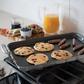 Made of heavy-weight aluminum construction, this 2-Burner High Sided Griddle is perfect for indoor and outdoor cooking. Excellent for larger indoor projects, this griddle fits over two stove burners or any camp stove. Features a non-stick surface for easy clean up.