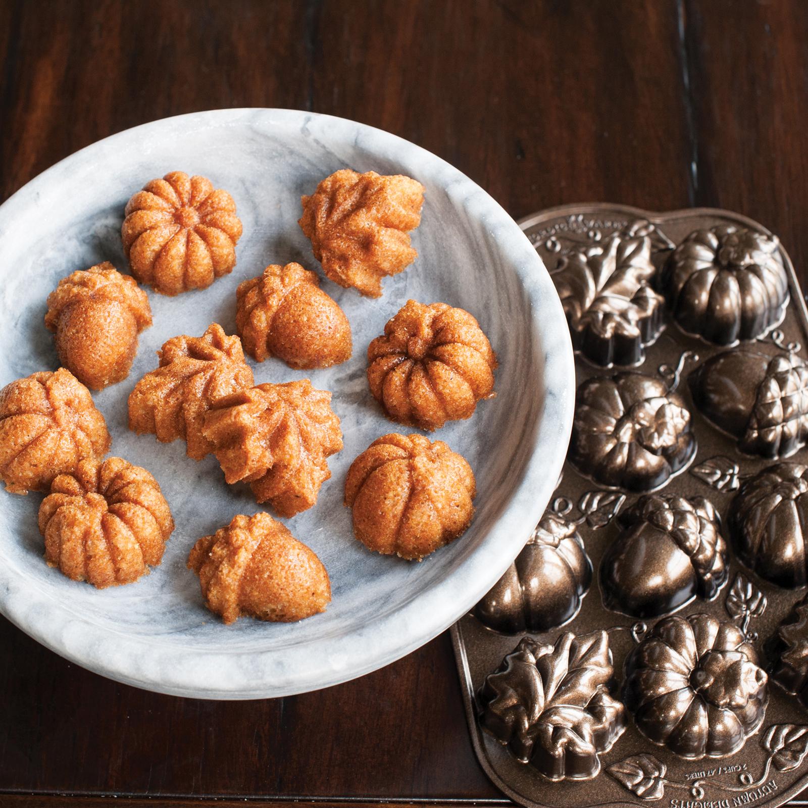 Add whimsy to your harvest gatherings with these darling acorn, pine cone, walnut and pumpkin cakelets. Bakes 12 at once. Your guests will eat'um up!