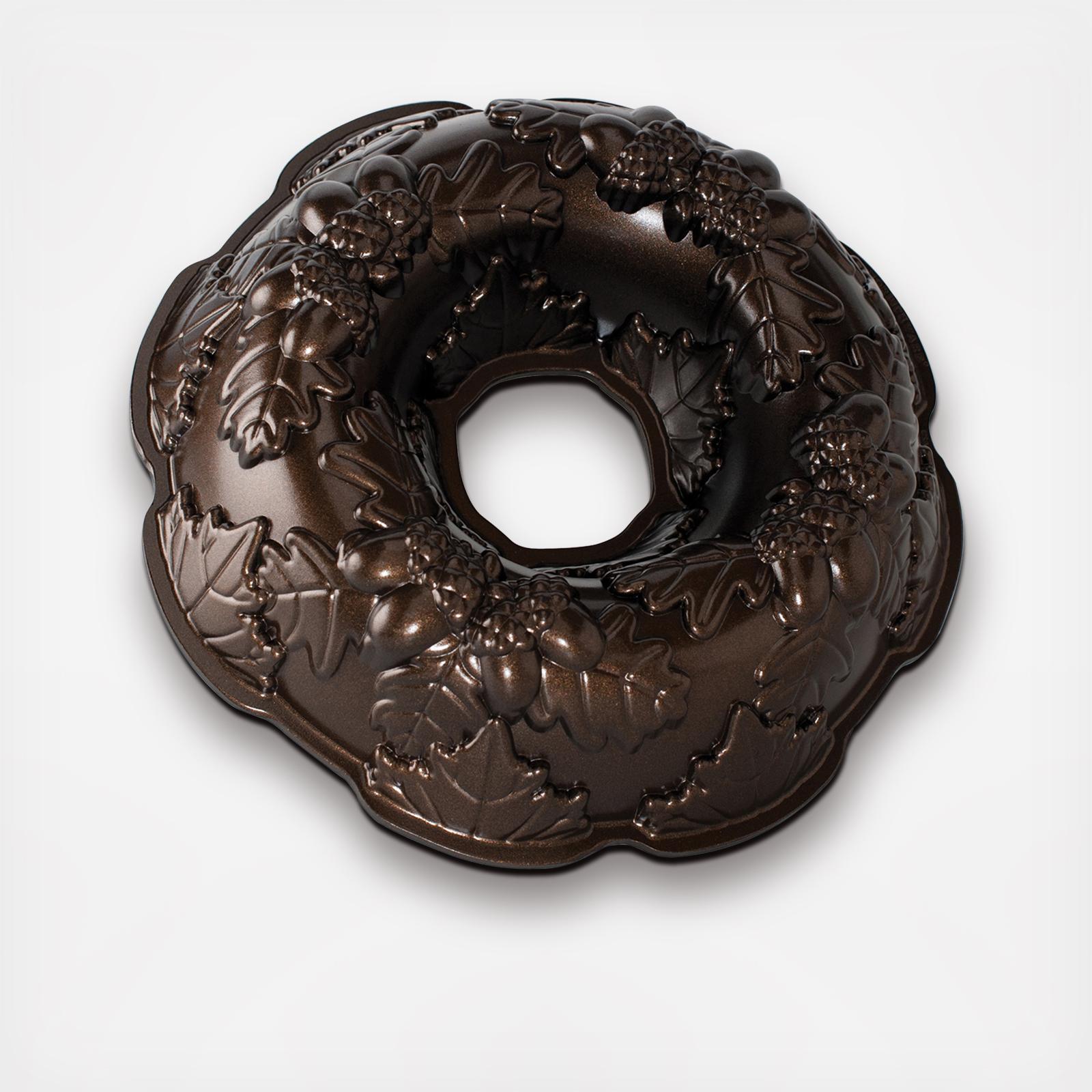 Classic and simple, a beautiful fall wreath makes a breakfast coffee cake or a fall flavored dessert something special. Nordic Ware’s original Cast Aluminum Bakeware provides fine details and superior baking performance. Distinctive premium nonstick interiors allow for quick release and easy cleanup. Heat reflective silver platinum exteriors ensure uniform browning. 10 cup capacity.