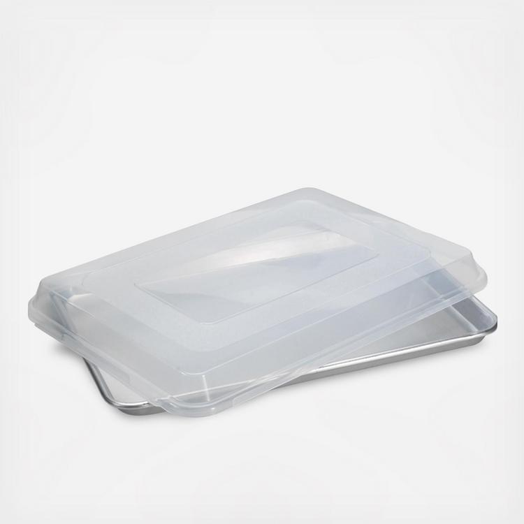 This pan is perfect for bars and brownies, and with its convenient lid, you can even tote your goodies to dinner parties and picnics. The rust proof, natural aluminum construction provides even baking with uniform results, and the encapsulated, galvanized steel rims inhibit warping.