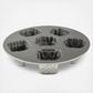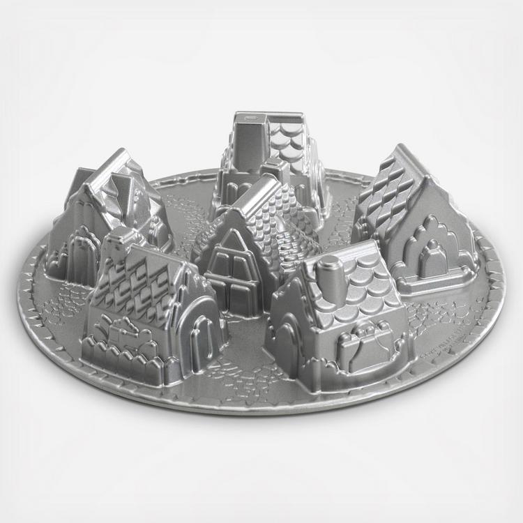 Create your own snowy village scene with these diminutive cottages. Original Cast Aluminum Bakeware provides fine details and superior baking performance. Distinctive premium nonstick interiors allow for quick release and easy cleanup. Heat reflective silver platinum exteriors ensure uniform browning. 6 cup capacity.