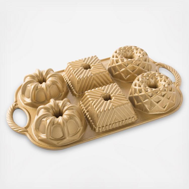 Bake six spectacular small scale Bundt cakes at once. Featuring three geometric shapes in an entirely new and enchanting mix, these designs have never been seen in this size before now!