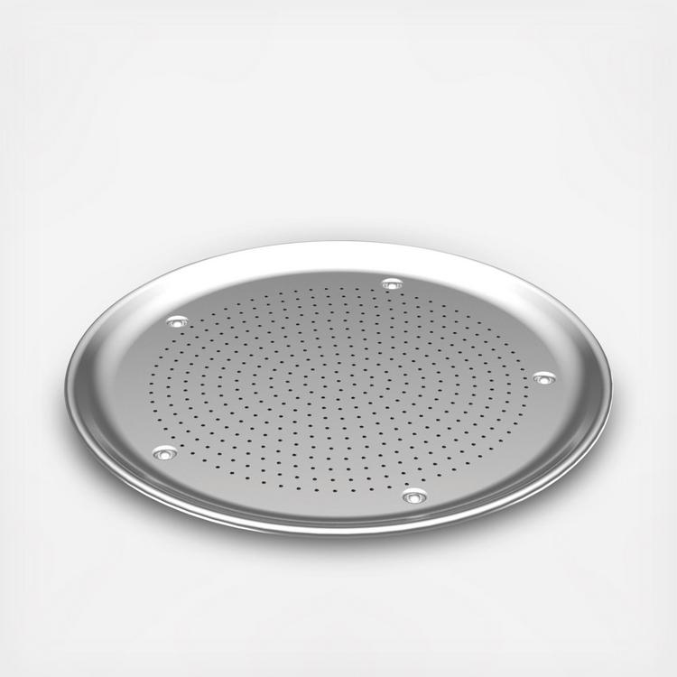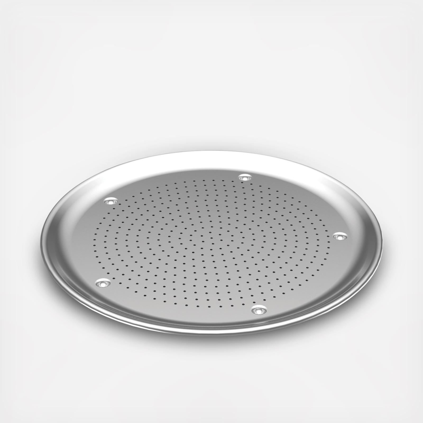 Professional pastry chefs and bakeries rely on pure aluminum for consistently perfect results. You can do the same with the commercial quality Naturals Bakeware collection. These premium pans will never rust and they produce evenly browned baked goods every time. The encapsulated galvanized steel rims prevent warping. There’s a reason restaurants serve pizza on pans like this: aluminum is the best material for even heating and acts as a shield to prevent burning. Airflow created by this pan’s tiny holes ensures perfectly crisp crusts. Dimpled feet provide cutting stability.