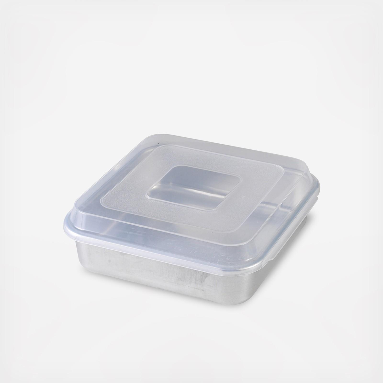 For goodies on the go! This pan is perfect for cakes and brownies, and with its convenient lid, you can even tote it to dinner parties and picnics. The rustproof, natural aluminum construction provides even baking and uniform results, and the encapsulated, galvanized steel rims inhibit warping.