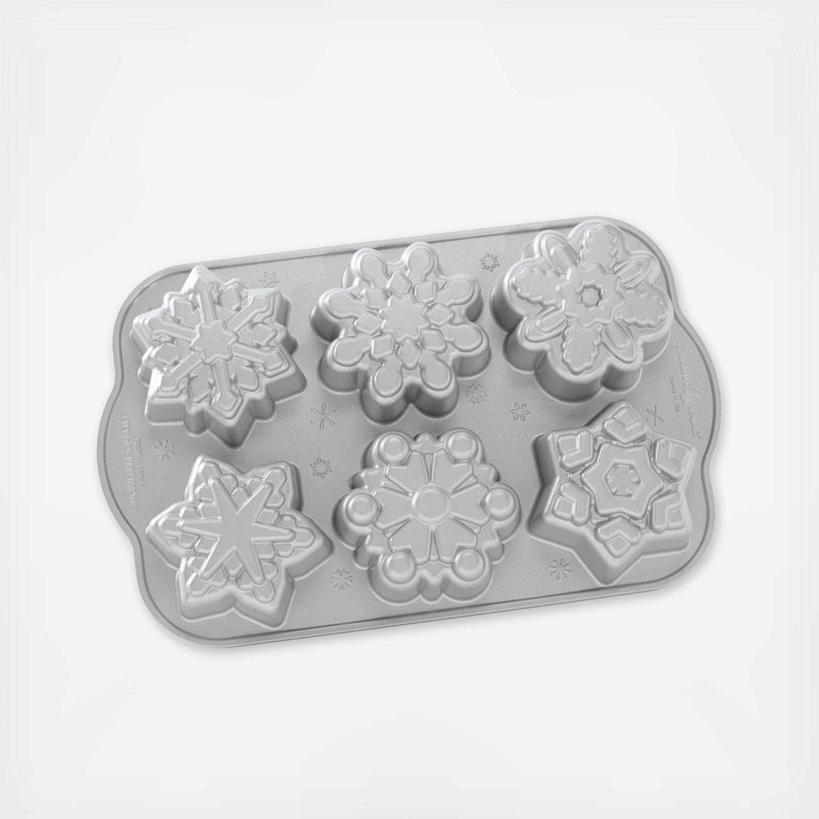 These lovely little snowflake cakelets will add sparkle to any winter gathering! The cast aluminum construction guarantees even heating and uniform browning, while the non-stick finish allows for easy release. Each pan features six different cakelet designs.