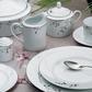 Birchwood brings modern elegance to the table. The delicate branches and budding twigs in platinum brings a natural element to a modern white porcelain dinnerware collection. The edge of each piece is adorned with a thin platinum band. Birchwood offers place setting components as well as an array of serving pieces and accessories. Birchwood is durable enough for daily use.