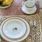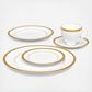 Charlotta is a beautifully classic collection in porcelain, featuring the modern addition of microwave-safe. The prominent banding features flowers and scrolling leaves, perfect for elegant dinners while casual enough for daily use. Charlotta offers place setting components as well as an array of serving pieces and accessories. Charlotta is durable and dishwasher safe.