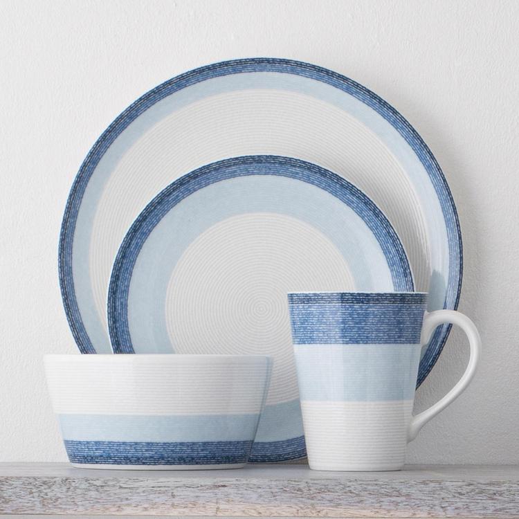 The Colorscapes Layers collection features multiple colors, modern design and product durability. Each piece has a subtle texture of coiling concentric circles. In addition to the texture, items include a gradation of color bands in each colorway. All items in the Colorscapes Layers collection are crafted in durable porcelain and are designed for daily use.