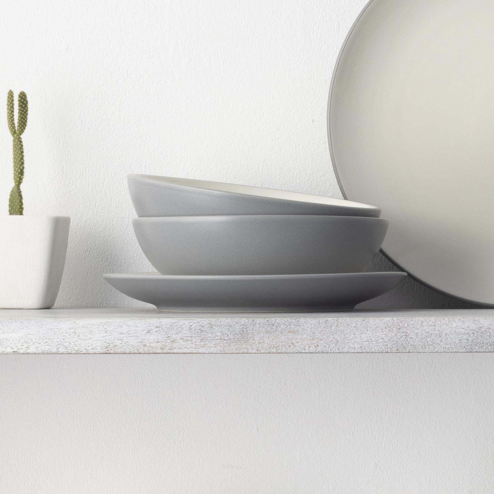 Colorwave features a matte color exterior. Most items also have a glossy, cream-colored glaze on the inside. Mix and match the different shapes and add a splash of color to your table.