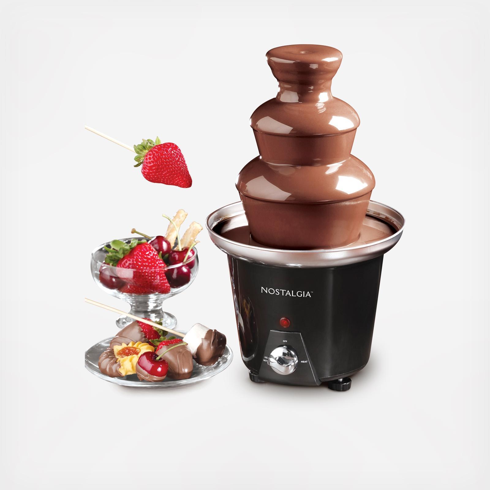 Impress quests with elegance and style at any special event. This chocolate fountain creates a decadent cascade of sweetness that will add mouth-watering fun to any occasion. Simply pour the recommended amount of melted white or dark chocolate into the base and switch on the motor. Watch as the chocolate is carried to the top of the tower where it flows down each tier in a mesmerizing display. Provide guests with fresh strawberries, marshmallows, pretzels, cookies, and other goodies for dipping. Cheese and barbeque sauces may also be used. The fountain easily disassembles for quick cleanup. Create a beautiful addition to any dining table, as well as an impressive display at events or casual gatherings with friends and family.