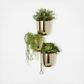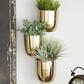 The gold set of 3 hanging planter can be hung in your garden, office, or living room to add a bright touch that complements any contemporary space. This item ships in 1 carton. Iron wall planter makes a great gift for any occasion. Can be hung vertically using the hanging hooks; nails and screws not included. Suitable for indoor and outdoor use. This item ships fully assembled in one piece. Planters do not have drainage holes but they are not watertight. This is a single gold colored hanging planter. Contemporary style.