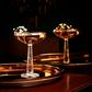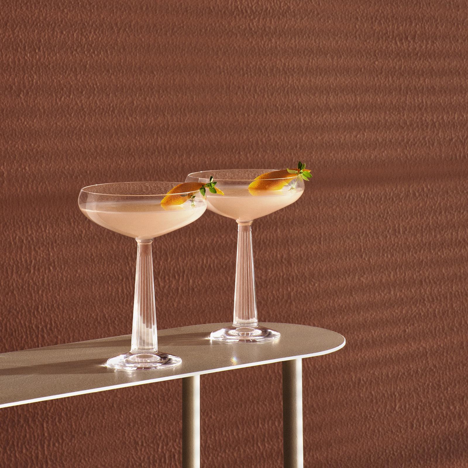 A brand-new addition to the Big Top collection, these coupe glasses offer a refreshingly modern take on the collection’s circus theme. The pure and refined silhouette is cast from clear lead-free crystal and typified by a generous bowl, as well as a tapered stem etched with a raised linear pattern for a delightful, tactile finish. Presented in a set of two. This item is handmade.