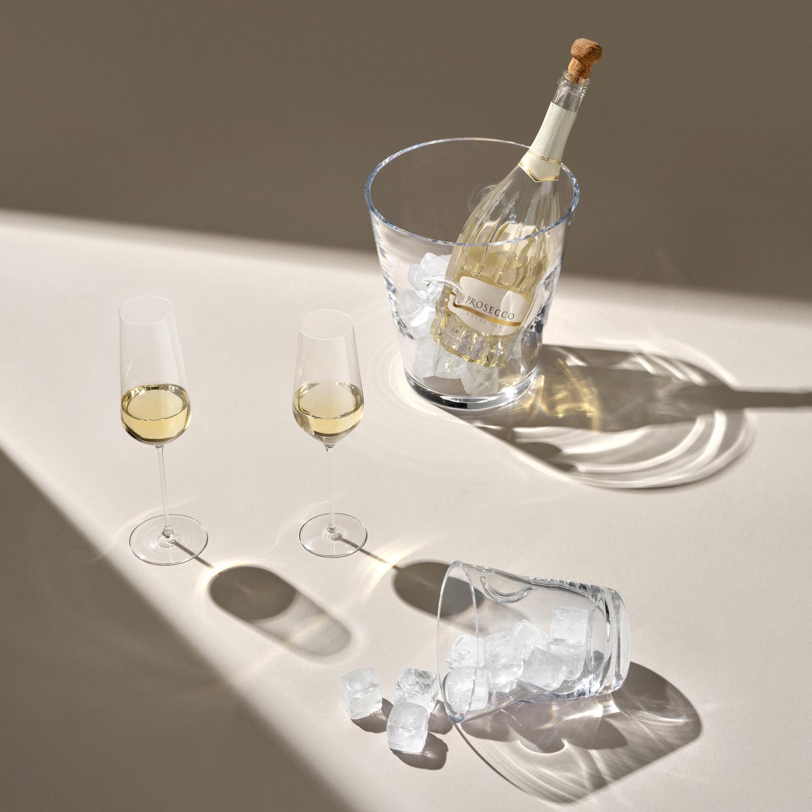 With a strong silhouette that almost defies its delicate crystalline glass composition, the Glacier Champagne Cooler takes both functionality and aesthetics into account. Sharp yet comfortable, it presents a pair of elegant hand-pressed dimples that ensure a reliable grip when handling the ice.
