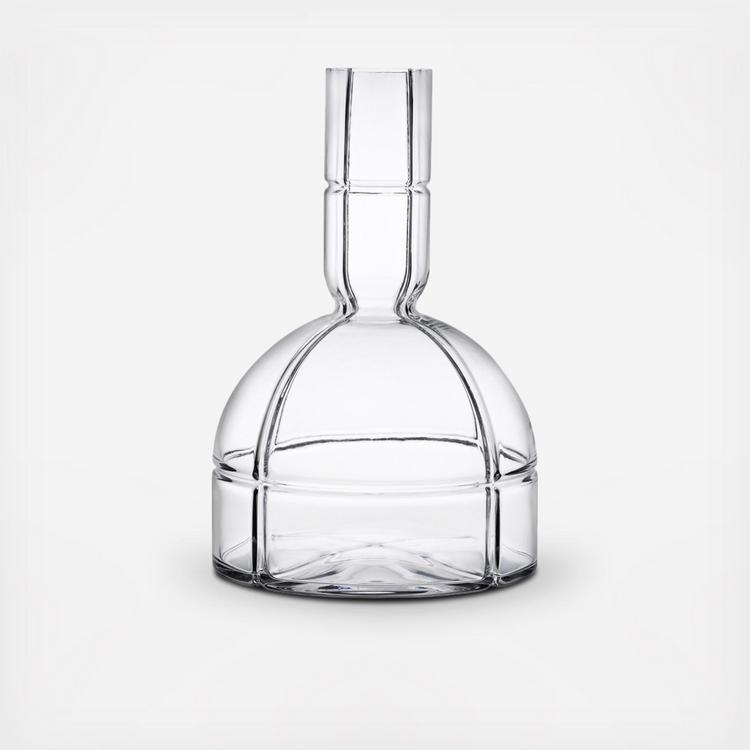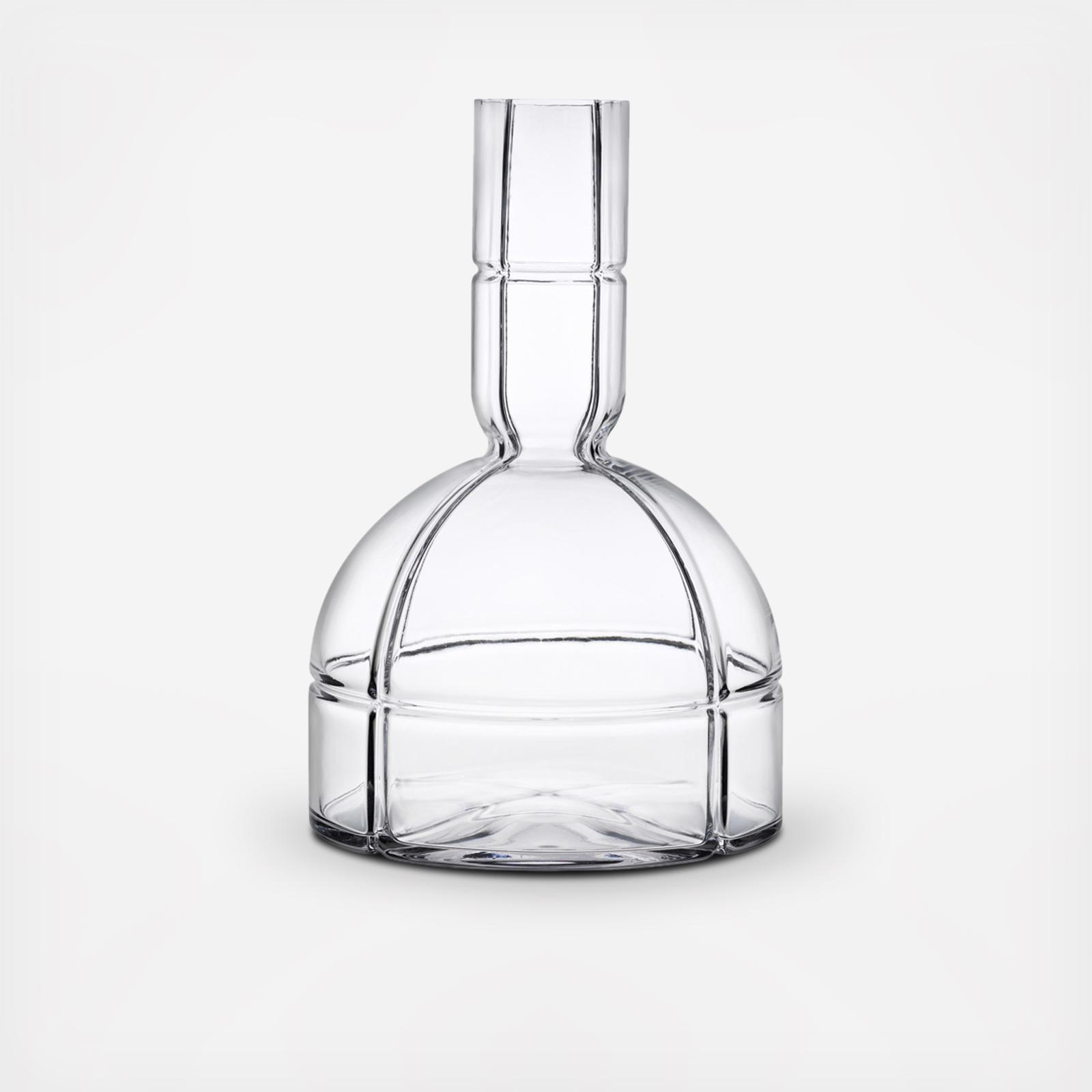 The O2 carafes are solid wide-bottomed decanters made from the highest quality crystal glass. The glass has been delicately moulded with a series of dramatic intersecting perpendicular lines creating a sense of depth and character. The bottom of the carafes are softly domed, letting light into the base of the item.