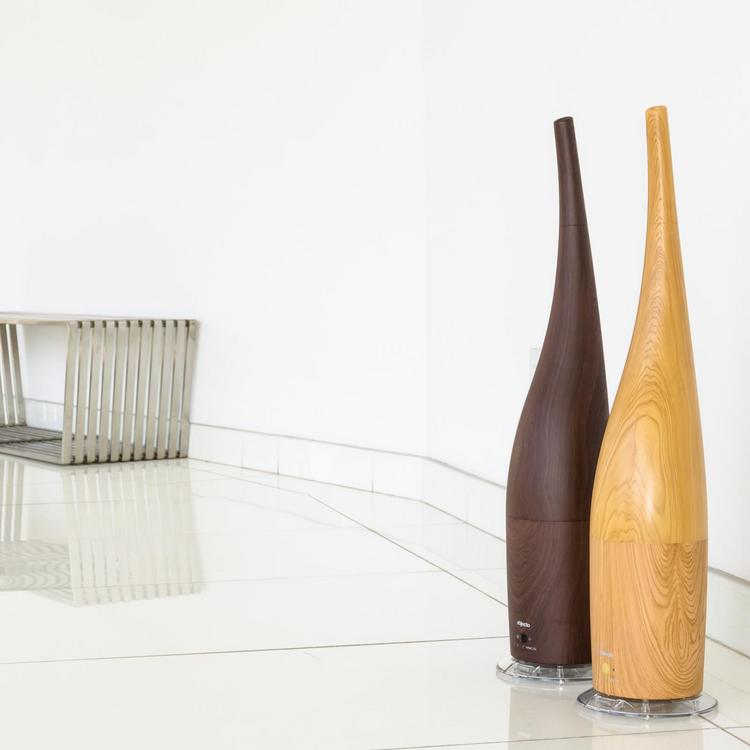 A modern classic, the W7 serves as a floor model, and the elongated piece lends an elegance to every room. Its hybrid technology emits an even mist and to further enhance your ambiance, avail yourself to the aroma therapy option. The antibacterial water tank is easily removable from its wood-like casing to ensure the unit is as practical as it is attractive.