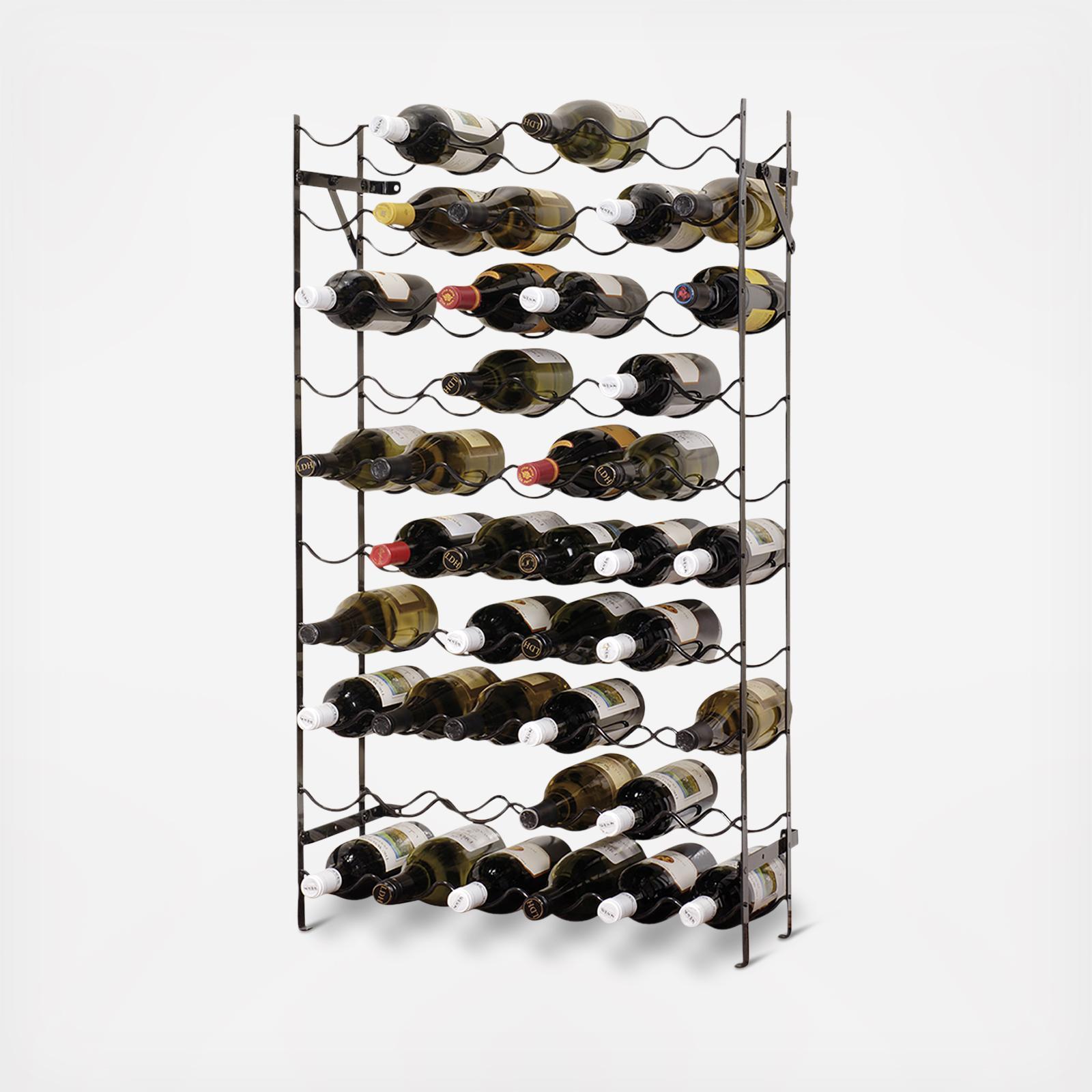 Whether stocking a cellar, furnishing a kitchen or making good use of a tucked away nook, wine lovers will be able to make efficient use of available space. Folds flat for shipping and mounts to the wall for stability.