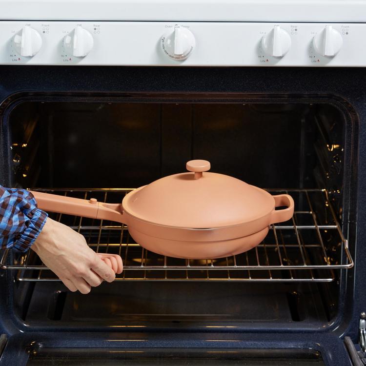 Deep enough to roast a chicken, shallow enough to flip an egg. The Always Pan 2.0 is the gold standard for versatility. Doing the job of ten pieces of traditional cookware. A pan that braises, sears, steams, strains, sautes, fries, boils, bakes, serves, stores does it all.