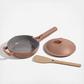 Care Instructions: Hand wash to preserve interior coating. Dishwasher not recommended. Heat-resistant and oven safe (with or without lid) up to 450°F (232°C). Compatible with gas, electric, induction, and ceramic cooktops - avoid dragging it across surfaces to prevent scratches. Recommend using medium heat and a little patience to get it hot and ready. Not microwave safe. No metal utensils (not recommended as it will damage the interior surface). No aerosol spray oils. Avoid contact with abrasive sponges or scouring agents as it can damage the material. Avoid heating an empty pan/pot (note: it will naturally patina over time). Be careful! As with all cookware, use oven mitts (or our Hot Grips) and care to prevent injury. Allow to fully cool before washing. IMPT: The long handle and knob of your cookware is constructed to minimize heat transfer, but are metal, so may become hot during prolonged cooking or from radiant stovetop heat. Use caution when removing lids or touching handles. Use oven mitts or our hot grips as necessary. Tips + Tricks: 1-2 tablespoons of high smoke point oil will keep your nonstick happy. Something sticking? Just add a little baking soda, bring it to a simmer for a few minutes, and give it another go.