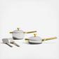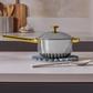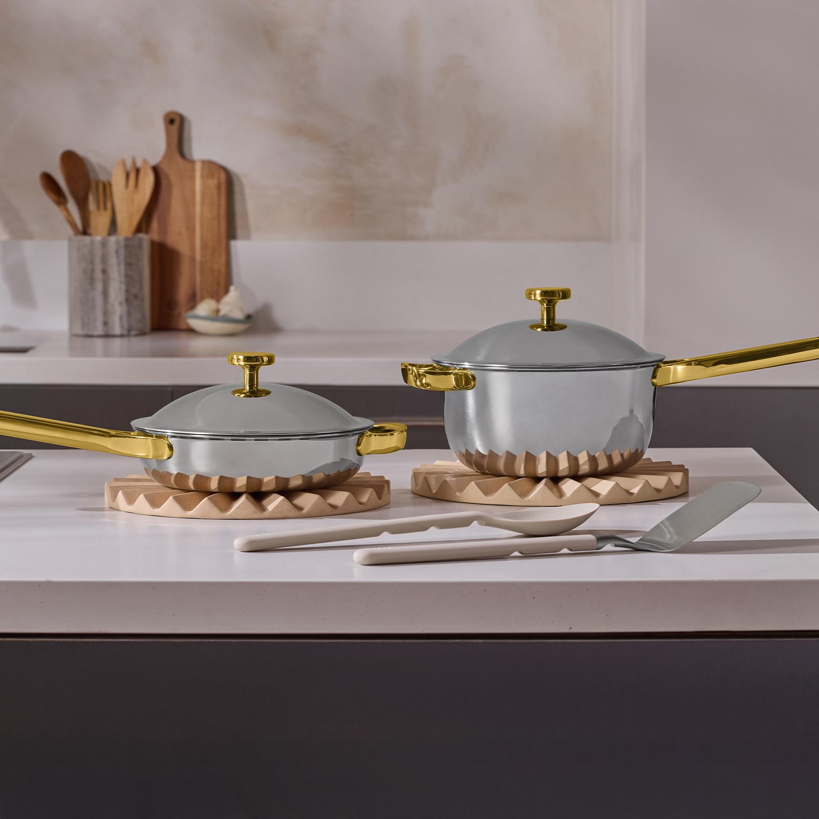 Care Instructions: Heat-resistant and oven safe (with or without lid) to 1000 F. Dishwasher safe. Bristle brush is recommended for everyday cleaning of interior (to get into texture). Compatible with gas, electric, induction, and ceramic cooktops - avoid dragging it across surfaces to prevent scratches. Interior is metal utensils safe; a soft sponge is recommended for the exterior to avoid scratches. Use caution with extreme temperature changes - ex. avoid dunking in cold water straight from oven or stove. Wipe away spills from the outside before they have the chance to burn - honor the fact that your pan will patina over time! *Note: can use bar keeper’s friend or baking soda vinegar paste to clean exterior. Not microwave safe. Be careful! As with all cookware, use Hot mitts or Hot Grips and care to prevent injury. Allow to fully cool before washing. Need an easier way to clean any caramelization or stuck on bits from your pan? Make a paste of baking soda and vinegar and scrub the interior or simply deglaze by boiling water with a tablespoon of baking soda on the stovetop. Long handle is constructed to minimize heat transfer, but is metal, so may become hot during prolonged cooking or from radiant stovetop heat. Use caution when removing lids or touching handles. Use oven mitts or our hot grips as necessary. How to Use / Tips + Tricks: Preheat your pan for 90 seconds before adding a teaspoon of high smoke point oil. Coat your pan’s interior surface with at least a teaspoon of oil before cooking (more if fine if desired). The oil helps to kickstart the nonstick effect. Note: Once you reach temperature, reduce your heat to help avoid burning food and maximizing the easy-release properties.