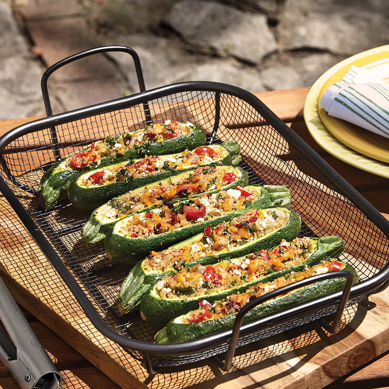The most versatile roasting basket you can find. The unique mesh design and perforated grilling surface enhances food's natural flavors. The sturdy mesh allows you to sear or roast foods without them slipping beneath the cooking grate, while the smoke rises through and infuses your food with even more flavor. Helper handles make transportation to and from the grill easy, but it's suitable for indoor cooking, as well, so you can enjoy year-round. Best of all, the basket's high quality nonstick PTFE/PFOA free coating makes for quick clean up and safe cooking.