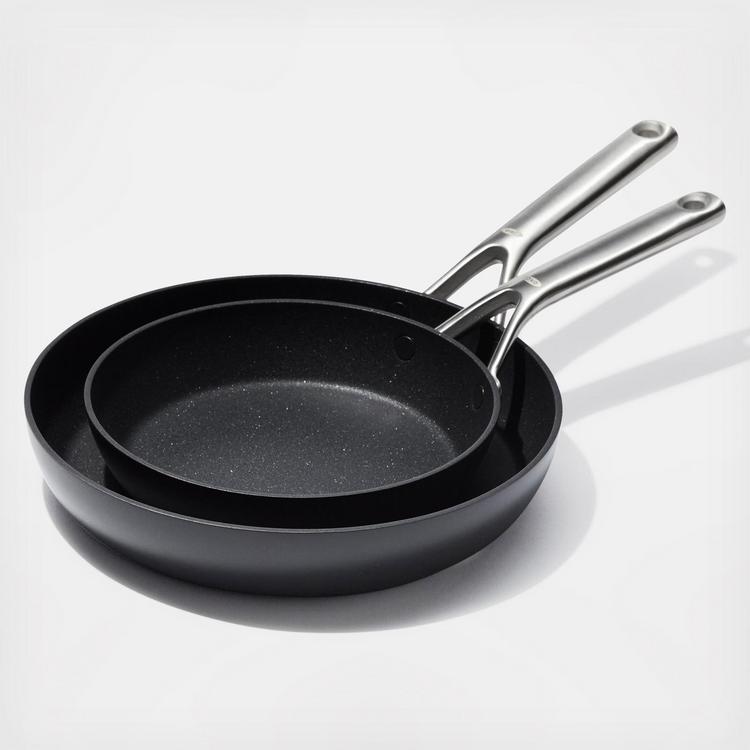 Get more room and better performance with the Ceramic Professional Non-Stick 2-Piece Frypan Set. Each of these pans features a diamond-reinforced ceramic non-stick coating that delivers effortless food release with less oil. Cleanup is easy, plus our ceramic has a non stick coating . This collection’s scratch-resistant, hard-anodized aluminum bodies heat faster and more evenly than traditional aluminum, and the thoughtfully designed shape means up to 35% more room to cook in each pan. Optimized for any kitchen, this set has heavy-duty induction bases that works on every stovetop and they’re dishwasher safe.