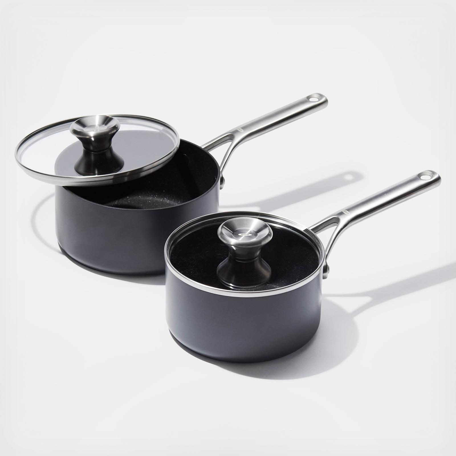 Get more room and better performance with the Ceramic Professional Non-Stick 4-Piece Saucepan Set. Each of these pots features a diamond-reinforced ceramic non-stick coating that delivers effortless food release with less oil. Cleanup is easy, plus our ceramic has a non stick coating. This collection’s scratch-resistant, hard-anodized aluminum bodies heat faster and more evenly than traditional aluminum. Optimized for any kitchen, this set has heavy-duty induction bases that works on every stovetop and they’re dishwasher safe.