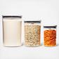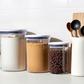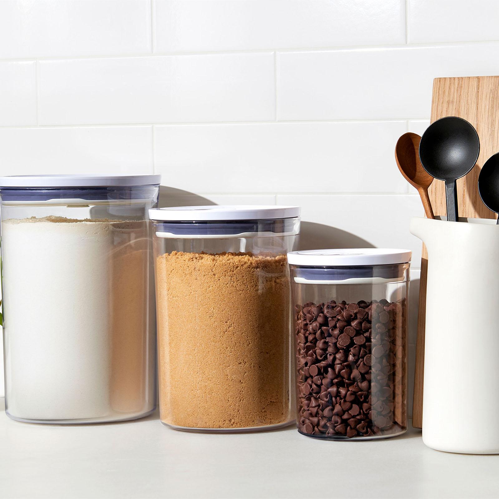Creates an airtight seal at the touch of a button. OXO's POP Canisters have a unique pop-up button mechanism that creates an airtight seal with one touch. The button serves as a handle to remove the lid with one hand. The large circular opening makes it easy to access contents.