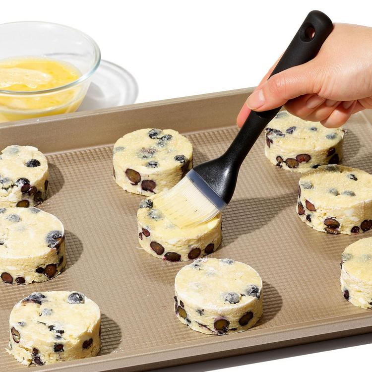 The Silicone Pastry Brush's multi-layered bristles work as if they are natural but have heat resistance and quick-clean convenience. Gaps in the center bristles hold liquid as you transfer, and tapered outer bristles let you brush delicate pastries with ease.