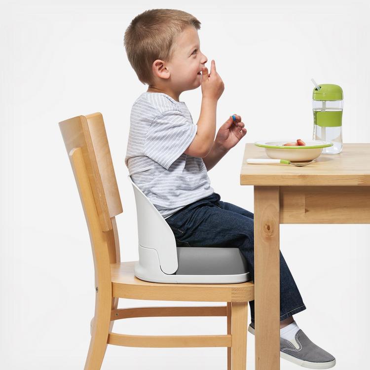 Our Perch Booster Seat helps little ones 15 months+ reach the table. Backrest supports tots and 3-point harness keeps them safe. Booster folds with the push of a button and straps are removable when your tot becomes a big kid (3+, up to 70 lbs). Cushion lifts out and is easy to wipe clean.