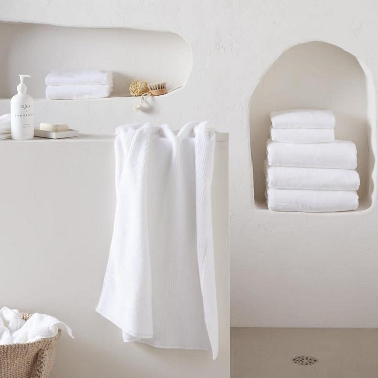 Rejuvenate your bath with these plush, supersoft and absorbent towels. They feature a sculpted rib design for a fresh look and faster drying time. Choose from modern, versatile and naturally grounding hues. Loomed from premium 100% long-staple Turkish cotton at 450 grams per square meter, the Soft Rib Towels are plush, absorbent and quick drying. Crafted using Spinsoft Technology – which results in greater fiber surface area – making them supersoft, fluffy and long-lasting.