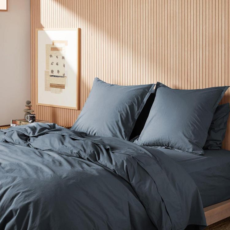 A must-have for a well-dressed bed, this square euro sham delivers on depth and decoration. Recommend two for a Queen and three for a King. Recommended for those who love classic percale but crave a buttery soft finish, this brushed and garment washed fabric is the ultimate in cozy. Sleeps slightly warmer than the percale, but cooler than the sateen.