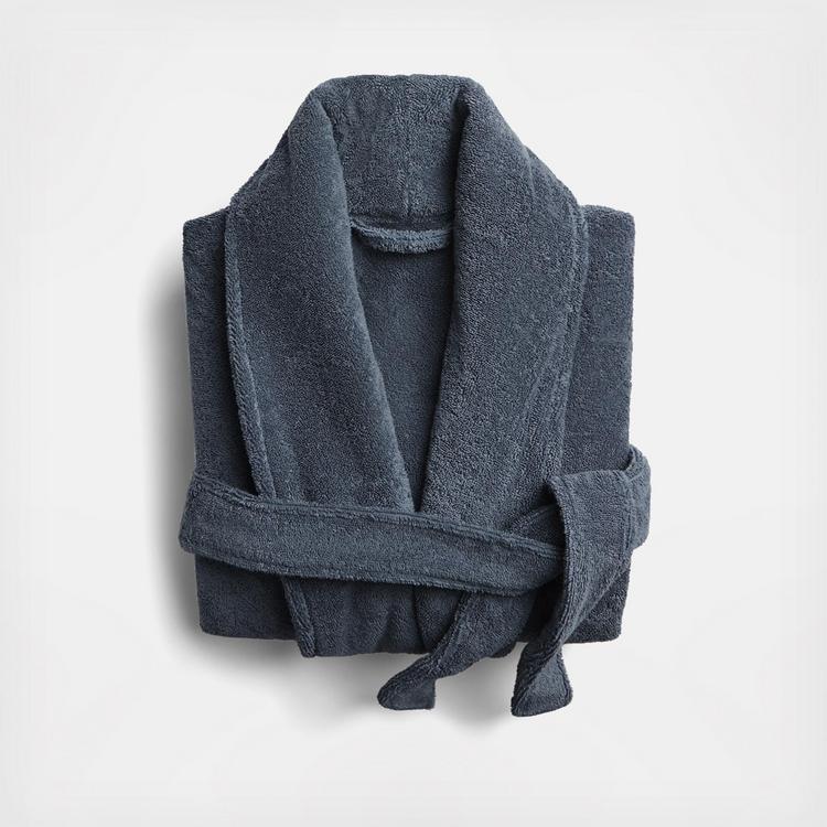 With two slouchy front pockets, a snug waist tie and cozy shawl collar, this super plush bathrobe is the ultimate relaxation wear. Made of long-staple turkish cotton.