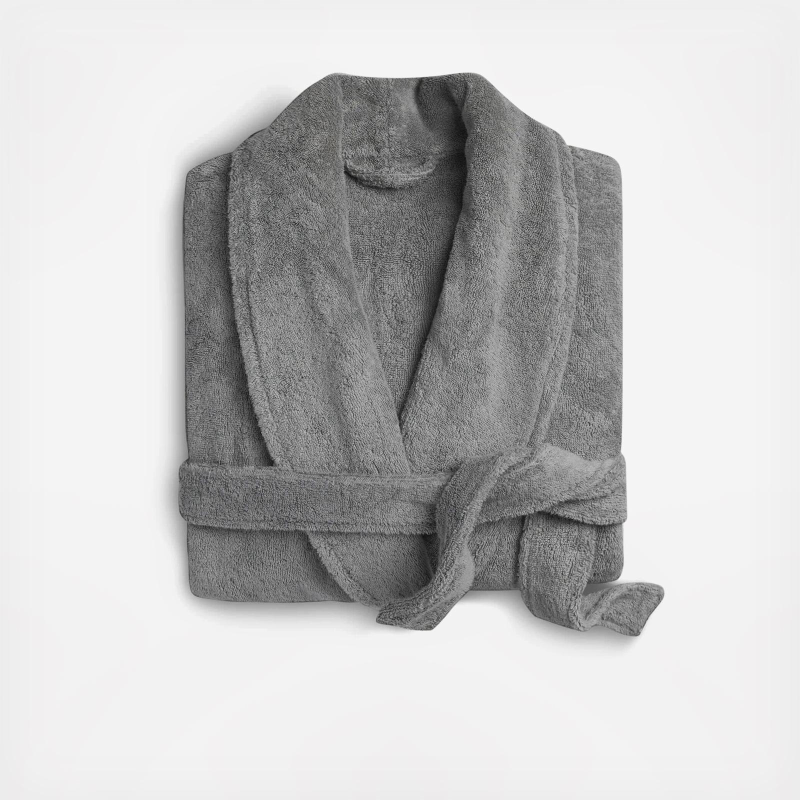 With two slouchy front pockets, a snug waist tie and cozy shawl collar, this super plush bathrobe is the ultimate relaxation wear. Made of long-staple turkish cotton.