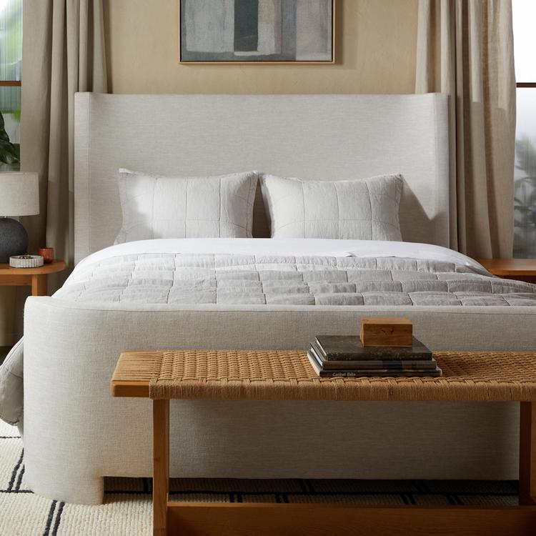 These quilted shams add a decorative element to your top of bed and are made of 100% garment washed linen on the front face and stonewashed percale on the reverse. Featuring box quilting pattern with tonal stitching detail on the front face. 100% poly batting fill. Oeko-Tex certified.