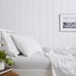 These quilted shams add a decorative element to your top of bed and are made of 100% garment washed linen on the front face and stonewashed percale on the reverse. Featuring box quilting pattern with tonal stitching detail on the front face. 100% poly batting fill. Oeko-Tex certified.