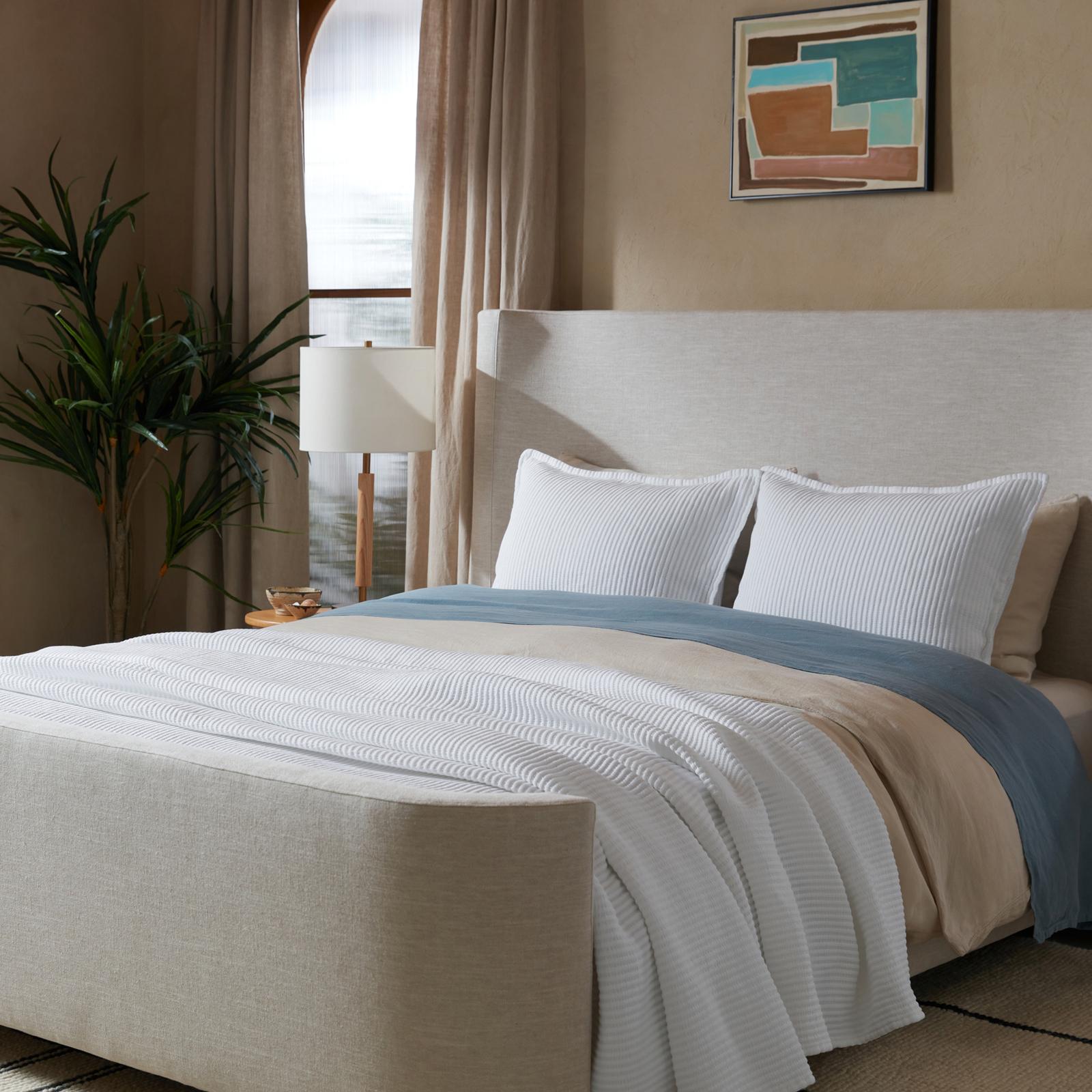Our minimalist take on the traditional French weaving technique. This decorative bed cover can be folded at the foot of the bed for a finished look or layered on top for extra warmth.