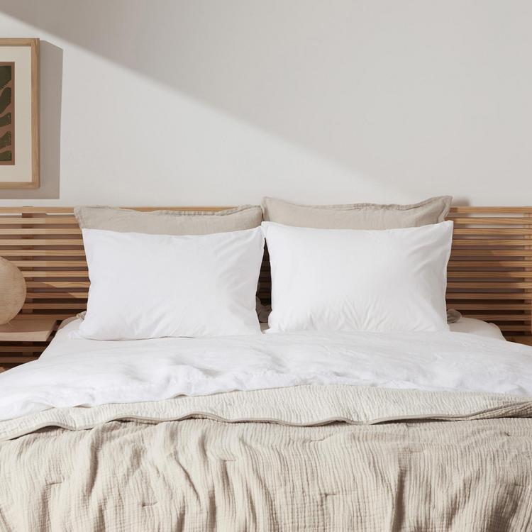The fitted sheet is the first step to build a dream-worthy bed. Featuring a continuous elastic hem, this percale sheet fits mattresses up to 16 inches deep and is cool and crisp to the touch with a matte finish. Soft, lightweight and stonewashed for a lived-in feel from the start. 100% long-staple Egyptian Cotton. Oeko-Tex certified.