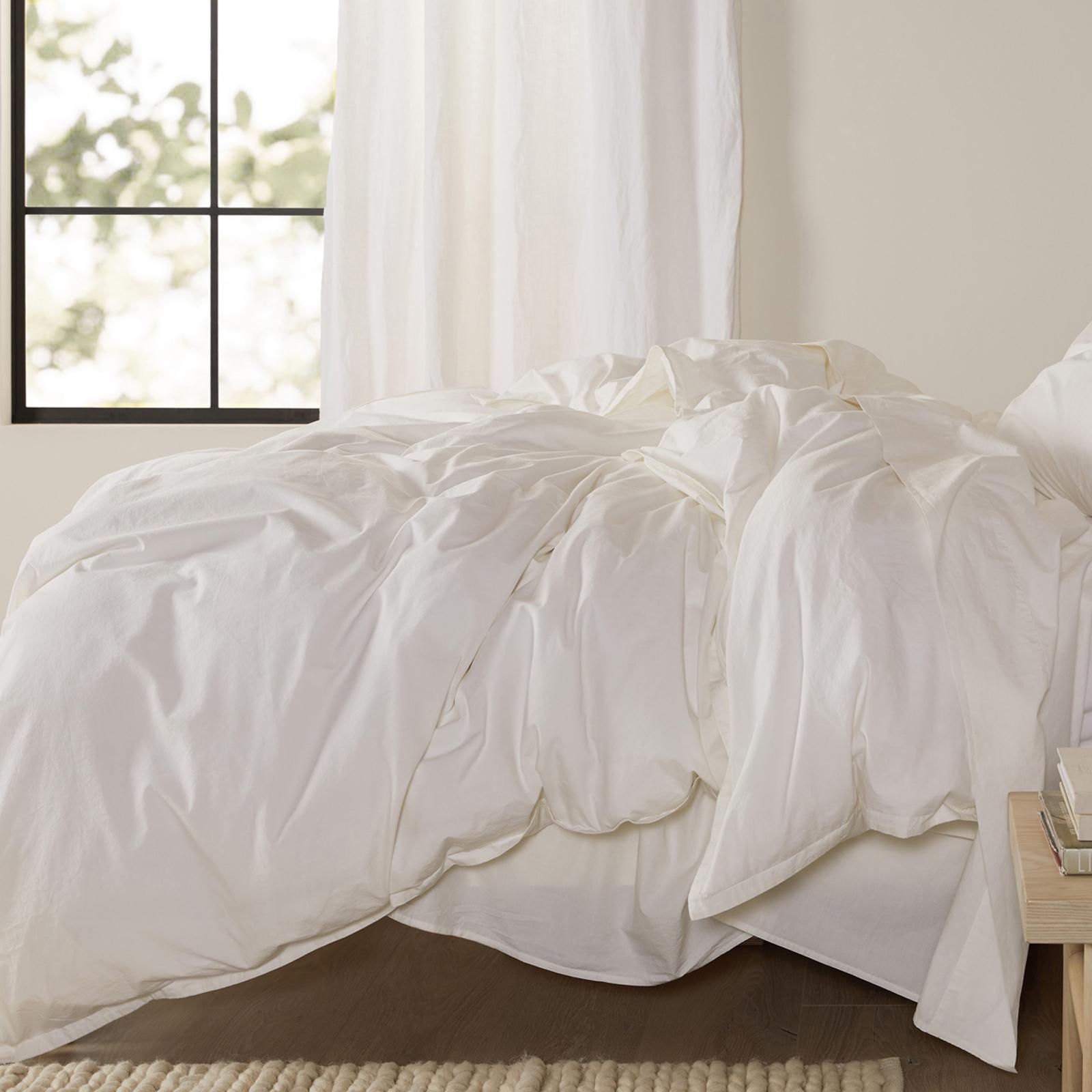 Set of two percale shams features back envelope closures and a half-inch border. This percale bedding is made of 100% long-staple Egyptian cotton and is cool and crisp to the touch with a matte finish. Soft, lightweight and stonewashed for a lived-in feel from the start. Oeko-Tex certified.