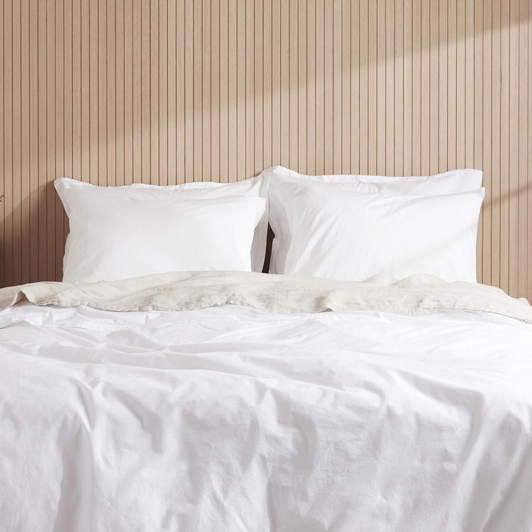 Set of two percale shams features back envelope closures and a half-inch border. This percale bedding is made of 100% long-staple Egyptian cotton and is cool and crisp to the touch with a matte finish. Soft, lightweight and stonewashed for a lived-in feel from the start. Oeko-Tex certified.