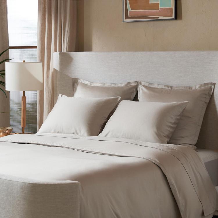 The fitted sheet is the first step to build a dream-worthy bed. Featuring a continuous elastic hem, this sateen sheet fits mattresses up to 16 inches deep and is ultra soft and smooth against your skin with a subtle luminous sheen. Accented with a subtle double stitch tipping. Long-staple egyptian cotton. Oeko-Tex certified.