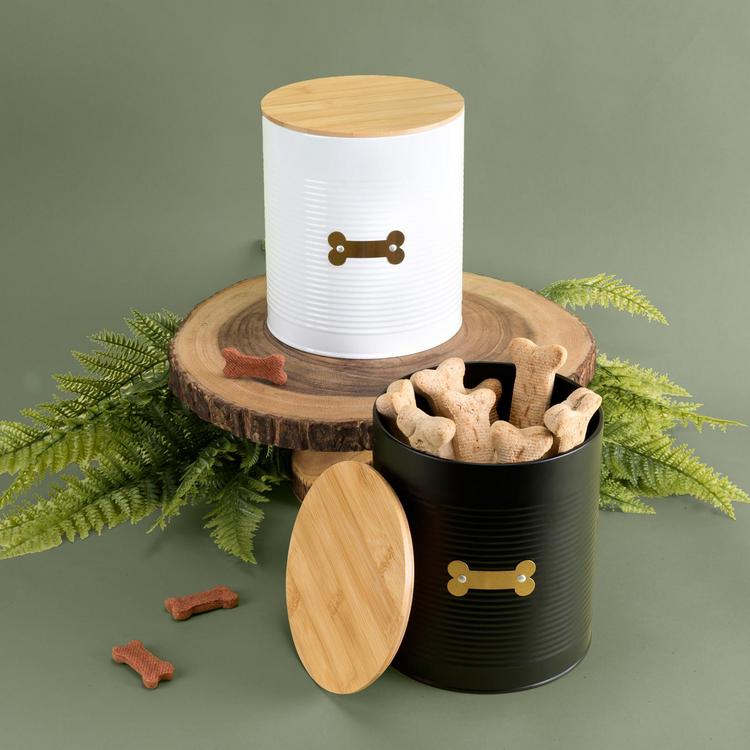 Give your furry friend a stylish treat with Park Life Design’s trendy treat canisters. Perfect for pet lovers, the "Hector" Treat Tin is a splendid storage solution, whether storing Fido’s favorite food or hiding human treats. Each chic container is crafted from food-safe, lead-free carbon steel and coated in silky smooth ribbed enamel for a luminous finish with copper plated dog bone label. An airtight silicone seal keeps contents fresh while blocking moisture, contaminants, and pests.