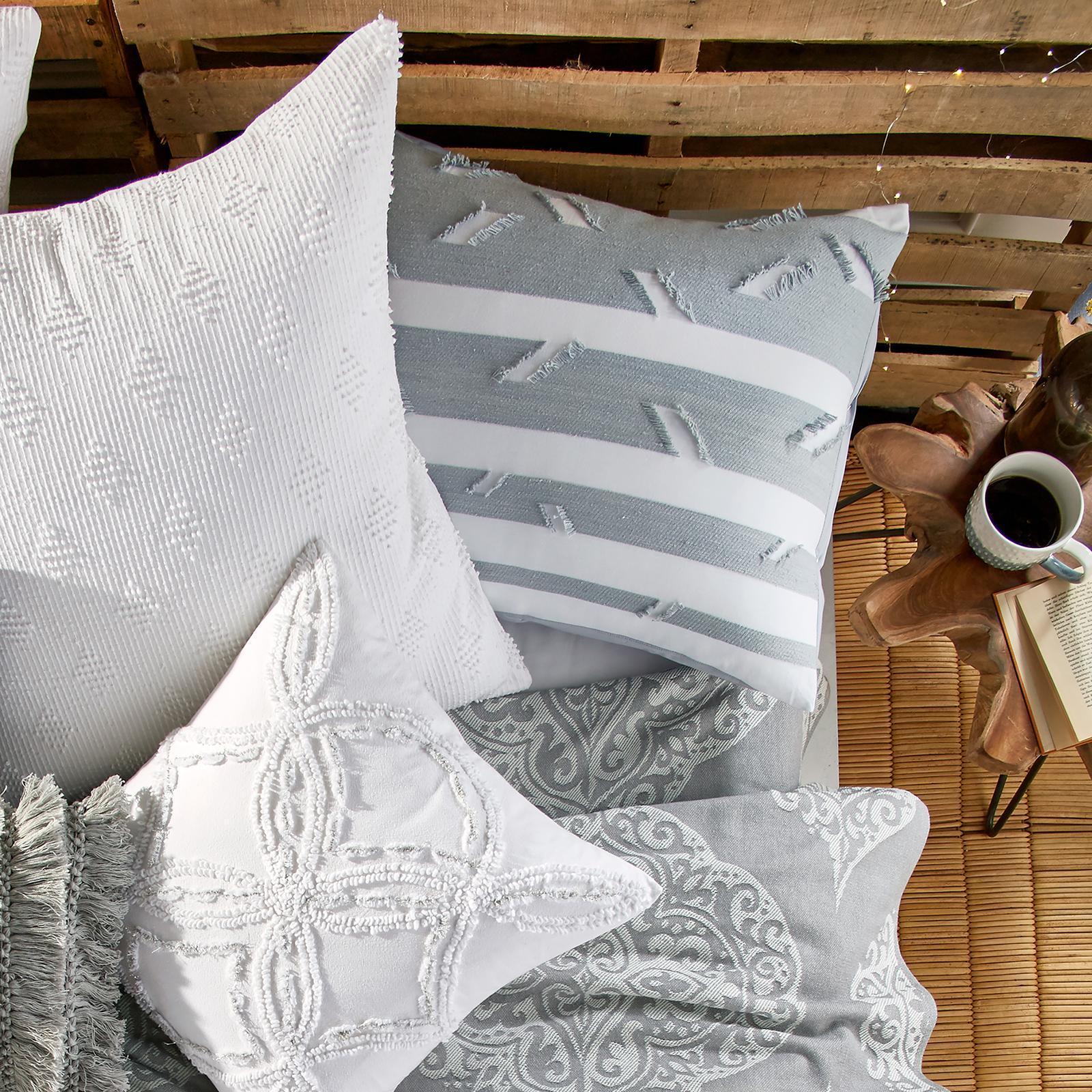 Compliment your bedroom with the delicate look of the Metallic Chenille Decorative Pillow. Made of 100% cotton and accented with soft, metallic lurex yarns these charming pillows just beg to be touched.