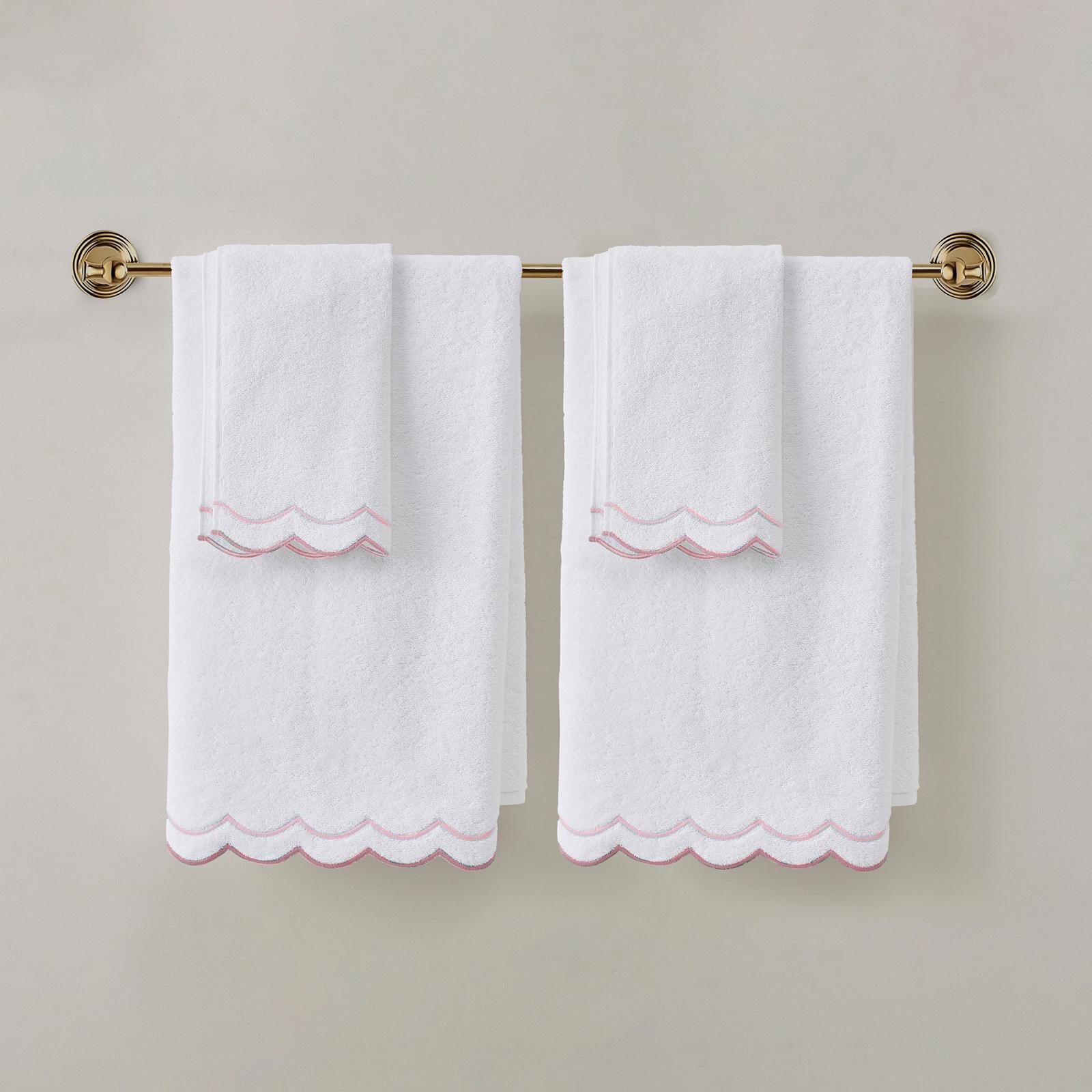 Give your classic white towel a dainty upgrade with the Peri Home Scallop Hand Towel. Fluffy, soft, and highly absorbent, this cotton towel will be the best touch to feel after a shower. The scallop hem in blue or sage adds a whimsical charm to your bath.