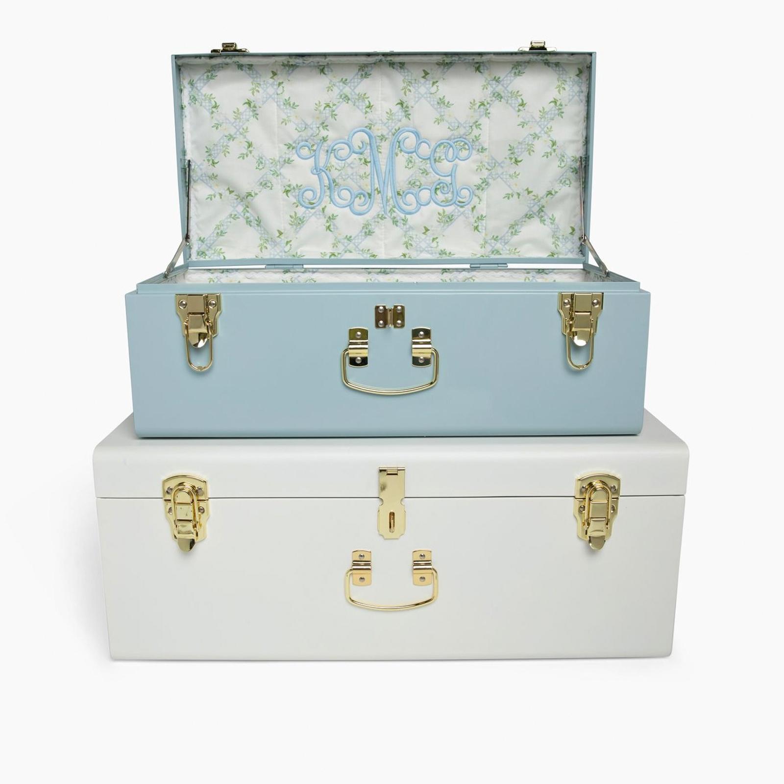 Celebrate your love story with a personalized Bridal Trunk Set and two engraved padlocks from Petite Keep. Hand-assembled in Missouri and made to last, each Trunk is a timeless heirloom designed to hold your most treasured keepsakes — from handwritten vows to wedding day mementoes. A beautiful way to celebrate the magic of your wedding day for generations to come.