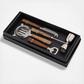 Elevate your home bar with this stylish 4-piece bar set, featuring durable stainless-steel tools and elegant wood handles. This set includes everything you need for expert cocktail crafting. The sleek design blends modern function with classic charm. Perfect for entertaining or as a sophisticated gift. This set is not dishwasher safe. Hand wash recommended.