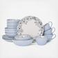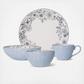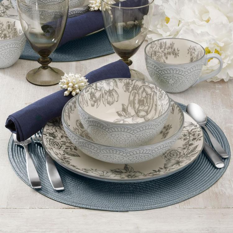 Gabriela Gray features a light gray floral motif with scalloped embossing on a light blue exterior, bringing a classic style to everyday dining. Crafted of Stoneware, featuring a reactive glaze. Due to the nature and hand-crafted qualities of reactive glaze, no two pieces are exactly alike and will exhibit unique variations in color and pattern. Product may slightly differ from image shown.