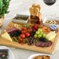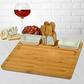 The Sherborne Bamboo serving tray has many unique features that make it a stand out at any party. It features a magnetic tool holder at the back of the board, recessed bread or cracker area, and a nicely sized front area for serving cheese or appetizers. It includes two removable ceramic bowls (inset in the board for stability) and four cheese tools. This set has an elegant look with refined details such as tapered edges and rounded corners.