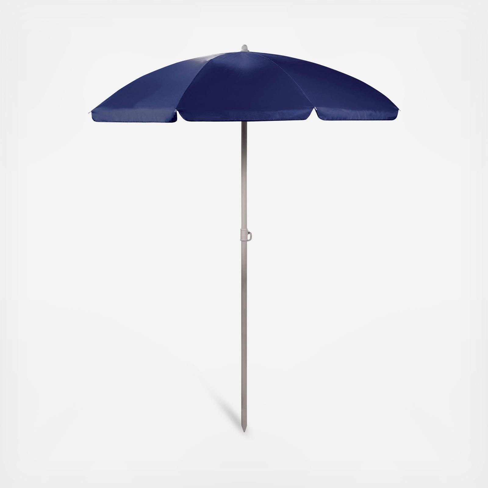 The Umbrella 5.5 is a polyester umbrella that is perfect for the beach, camping, spectator sports, and picnics. The pole measures 81.5" tall and 1.25" diameter and has tilting option and a pointed end for easier penetration into sand or dirt. The Umbrella measures 5.5 feet across (thus the 5.5 in the name) and comes with a matching polyester drawstring storage bag with carry strap. Don't get caught in the hot sun without your Umbrella 5.5 by Picnic Time!